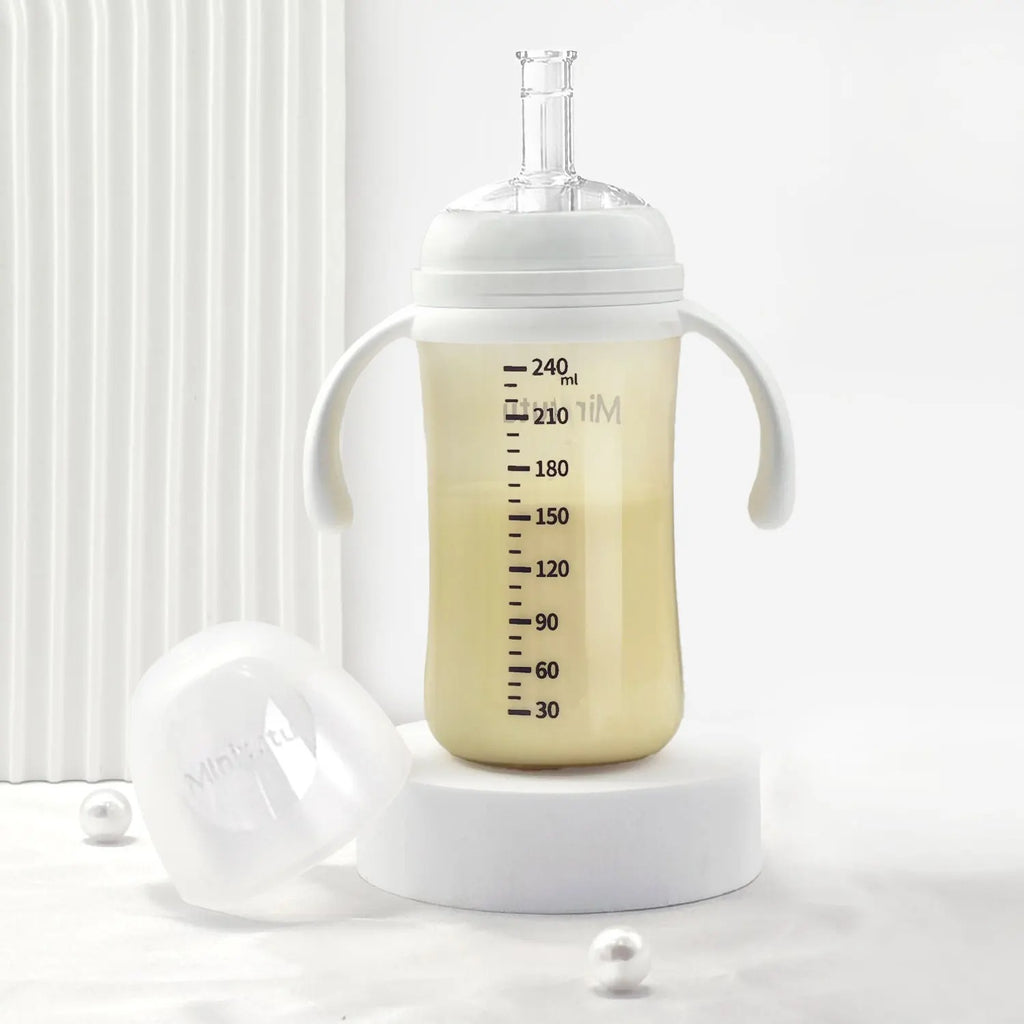 360° Trinklernflasche mit Schwerkraft-Strohhalm – Mühelos, Sicher & Auslaufsicher