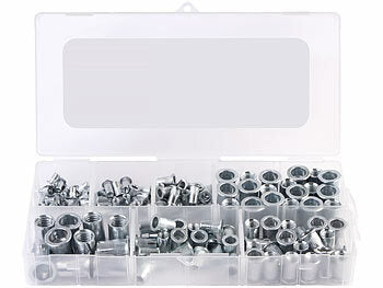 Vielfältige Größen sofort griffbereit: Mit insgesamt 330 Edelstahl-Nietmuttern und den passenden Dornen für M3 bis M12 decken Sie ein breites Spektrum an Anwendungen ab. Und alles ist bestens sortiert in einem übersichtlichen Koffer.