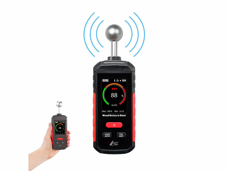 AGT Digitales Feuchtigkeitsmessgerät, Restfeuchtemesser für Holz