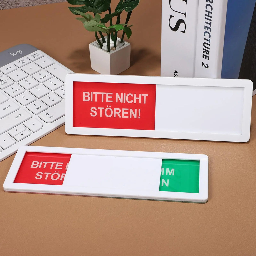 Ein Türschild mit einem Schieber und den Optionen "Bitte nicht stören" und "Komm rein" bietet eine praktische und stilvolle Möglichkeit, den aktuellen Status eines Raumes anzuzeigen. Mit einem einfachen Schiebeelement können Besucher sofort erkennen, ob sie eintreten dürfen oder ob Diskretion geboten ist.