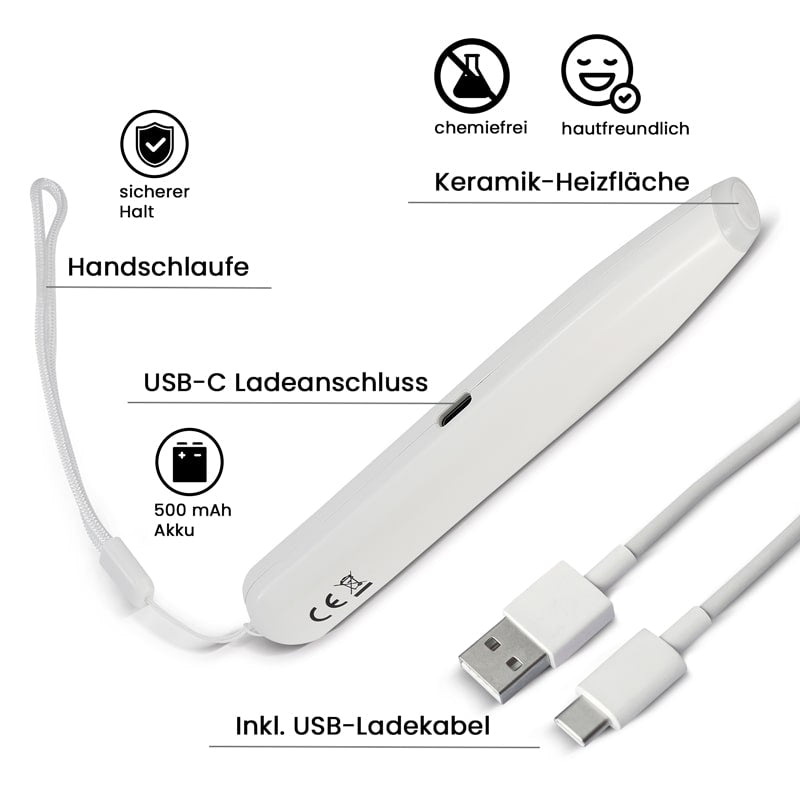Insektenstichheiler StichFix, chemiefreie Behandlung von Insektenstichen und -bissen, lindert Juckreiz und Schwellungen, natürliche Behandlung, kindersicher, mit Akku, aufladbar über USB Eaxus