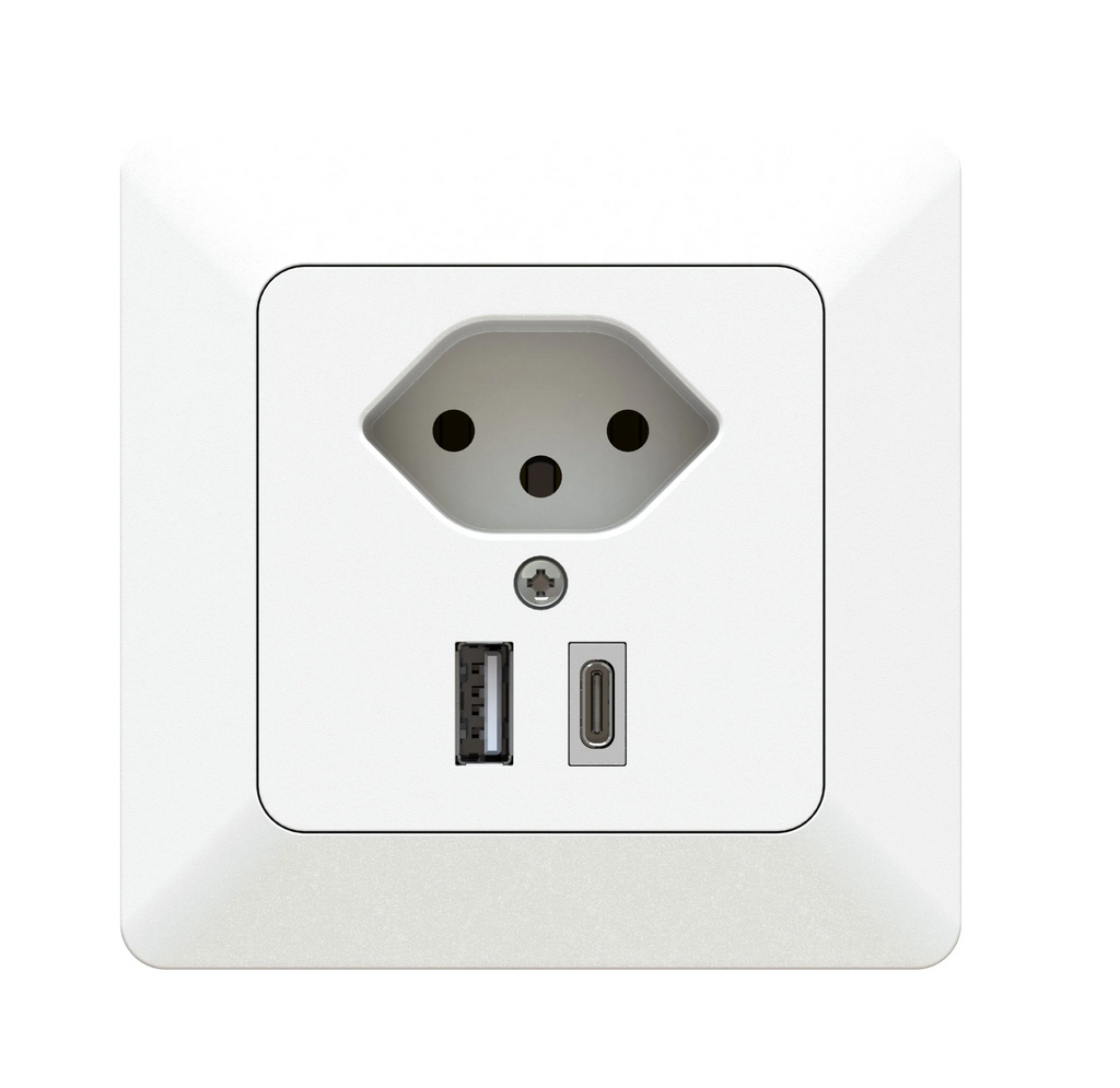 Diese Kombination wird in eine Gerätedose in der Wand montiert. Sie setzt sich aus einem Charger mit je einem USB-A- und -C-Anschluss sowie einer Typ 13 Steckdose zusammen. Das innovative Schalter- und Steckdosenprogramm modino priamos überzeugt durch modernes Schweizer Design und hochwertige Qualität. Die austauschbaren, farbigen Designprofile ermöglichen eine individuell gestaltbare Harmonie zwischen Einrichtung und Elektronik. Das umfangreiche Sortiment bietet Lösungen für anspruchsvollste Anwendungsherausforderungen. Die antibakterielle Oberfläche mindert das Infektionsrisiko bei häufigen Berührungen z.B. im öffentlichen Raum.