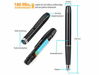 - Kugelschreiber-Videokamera DV-740.k inklusive 10 Ersatzminen, USB-Daten- und Ladekabel (Micro-USB auf USB-A), Auswurfstift, Schraubendreher und deutscher Anleitung - Kamera Stift - Außerdem relevant oder passend zu: Spy, Video, Wanzen, Bodycam, Spionage, Abhörgerät, Überwachung, Versteckte Mini, Spion und Minikamera