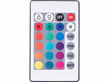- Fernbedienung zum Einstellen der Leuchtfarbe und zum Dimmen der Helligkeit
