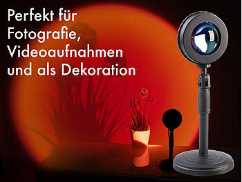 - LED-Sonnenuntergangsleuchte inklusive Fernbedienung mit Knopfzelle, Teleskop-Ständer und deutscher Anleitung - LED-USB-Sonnenuntergangslampe - Außerdem relevant oder passend zu: Farbe, Studio, Stativ, Halloween, Fotostudio, Sonnenaufgang, Sonnenuntergangs