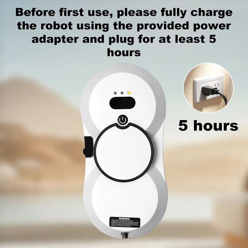 Der Fensterreinigungsroboter nutzt ein leistungsstarkes Rad mit einer Saugkraft von 2800 bis 3400 Pa. Der eingebaute Lithium-Ionen-Akku sorgt dafür, dass der Roboter bei Stromausfall für bis zu 30 Minuten in Standby bleibt, um ein Herunterfallen zu verhindern. Achten Sie darauf, das Sicherheitsseil zu befestigen, um zusätzliche Sicherheit zu gewährleisten.