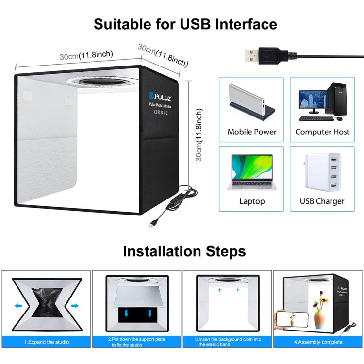 3. Einfach zusammenzubauen (nach drei Sekunden Zusammenbau einsatzbereit), Sie können dieses LED-Leuchtbox-Studio auseinanderfalten und auf jeder Oberfläche platzieren, um einen sehr guten Hintergrund für die Geschäftsfotografie kleiner Gegenstände und das Fotografieren von Produkten zu erhalten.
