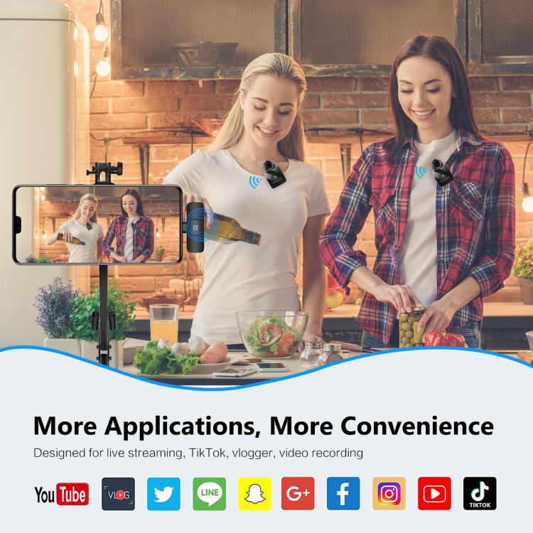 1. Drahtloses Tonabnehmermikrofon 2,4 G: drahtlose Verbindung, kann bis zu 48K High-Fidelity-Aufnahme ermöglichen