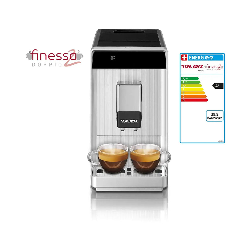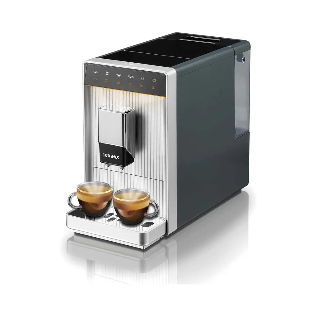Geniessen Sie den reinen Kaffeegenuss mit dem Turmix Finessa Doppio Kaffeevollautomaten Grau.