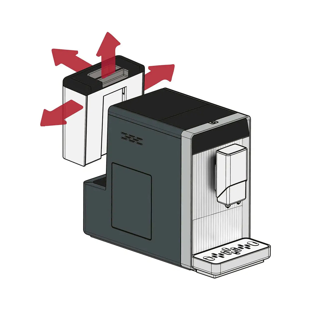 Dieser kompakte und energieeffiziente Kaffeevollautomat bietet Ihnen die Möglichkeit, Espresso, Doppelespresso, Kaffee Crema, Kaffee Americano und Heisswasser auf Knopfdruck zuzubereiten.