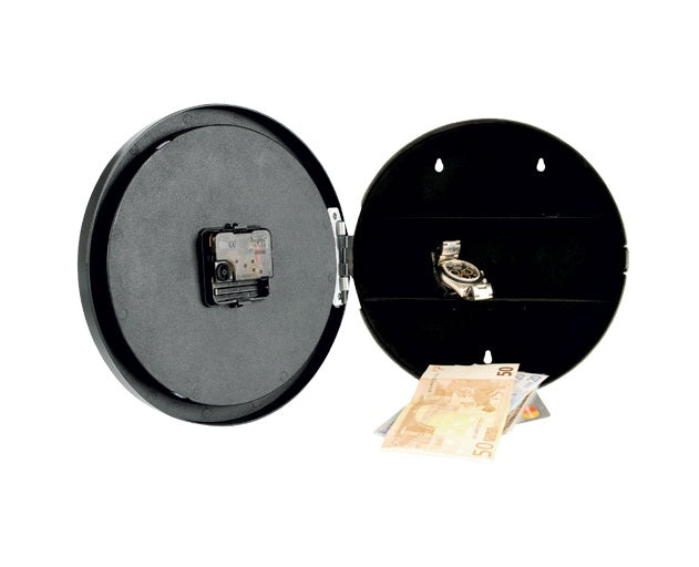 Diese stylische Wanduhr mit einem Durchmesser von 25 cm zeigt nicht nur zuverlässig die Uhrzeit an, sondern verbirgt auch ein geheimes Fach auf der Rückseite – perfekt zum sicheren Aufbewahren deiner Wertsachen! 🔐💶