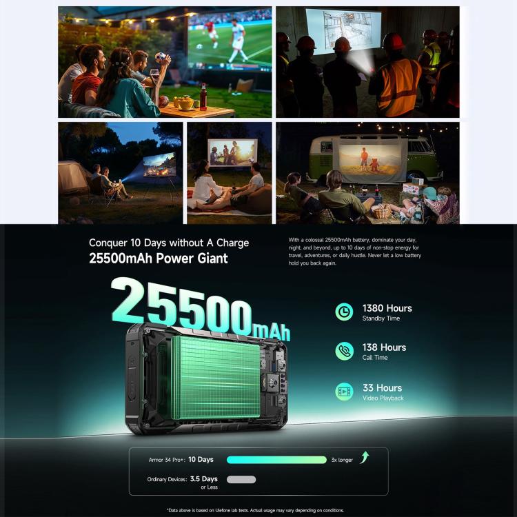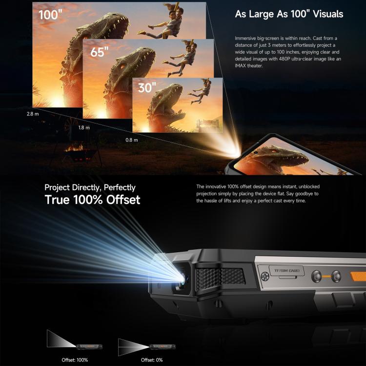 Ulefone Armor 34 Pro+ Projektor, 16 GB + 512 GB, Nachtsicht, robustes Smartphone (IP68/IP69K), 6,95 Zoll, Android 15, MediaTek Dimensity 7400X Octa-Core-Prozessor, Netzwerk: 5G, NFC, OTG (Schwarz)