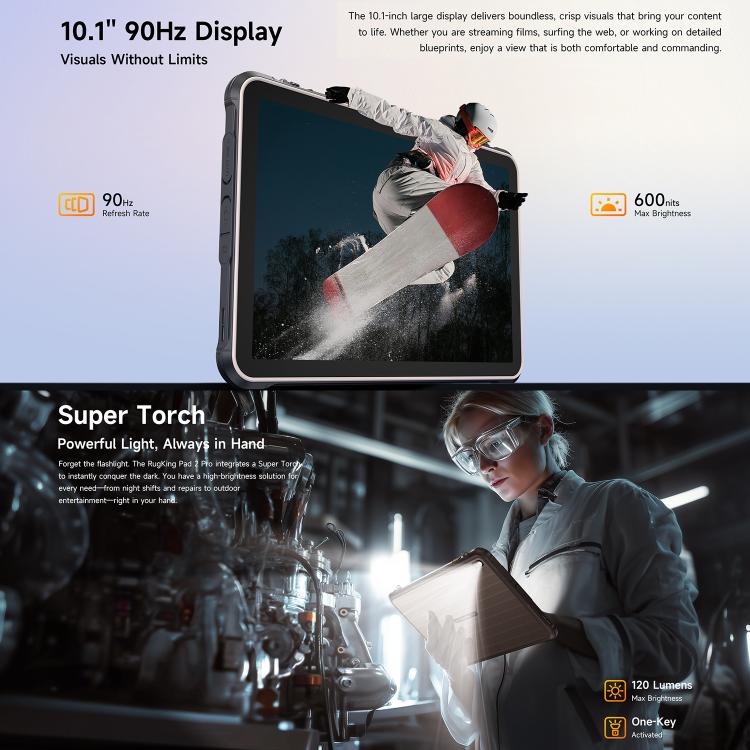 1. Display: 10,1 Zoll HD+-Bildschirm (1280 x 800 Pixel), 149 ppi, 600 Nits Helligkeit, 90 Hz Bildwiederholfrequenz