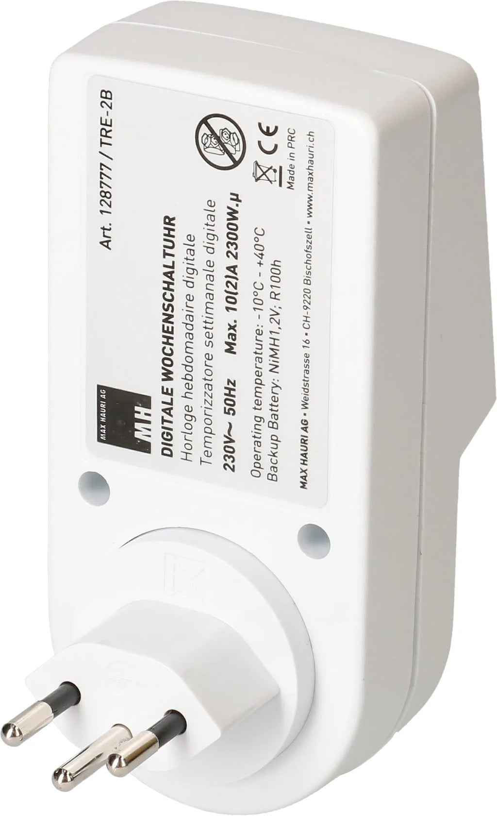 Zeitschaltuhr Typ 12/13 / Spannung: 230V (50Hz) / Betriebsstrom: 10A ohmsche Last, 2A induktive Last / digital / Funktion: erhöhter Berührungsschutz und Zufallsgenerator